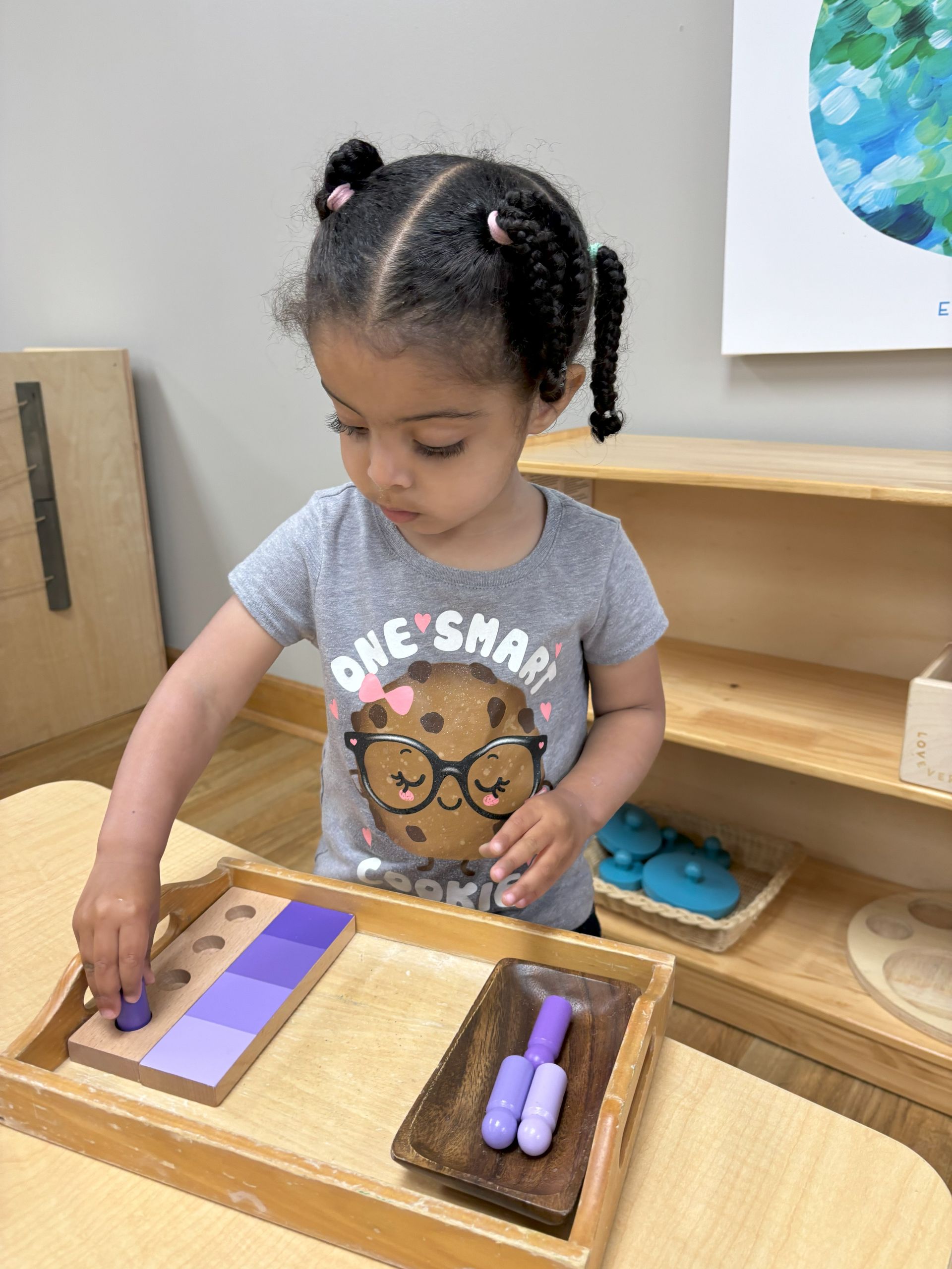 The Pre-Children's House (Toddler) learning environment is designed to be inviting and interesting to the child. The focus of activity is on the student’s learning needs and works/experiences are created, selected, and prepared to support the developmental needs of the children served at this level. Children also have experiences with our specialists in the areas of Spanish, Music, and Wellness.